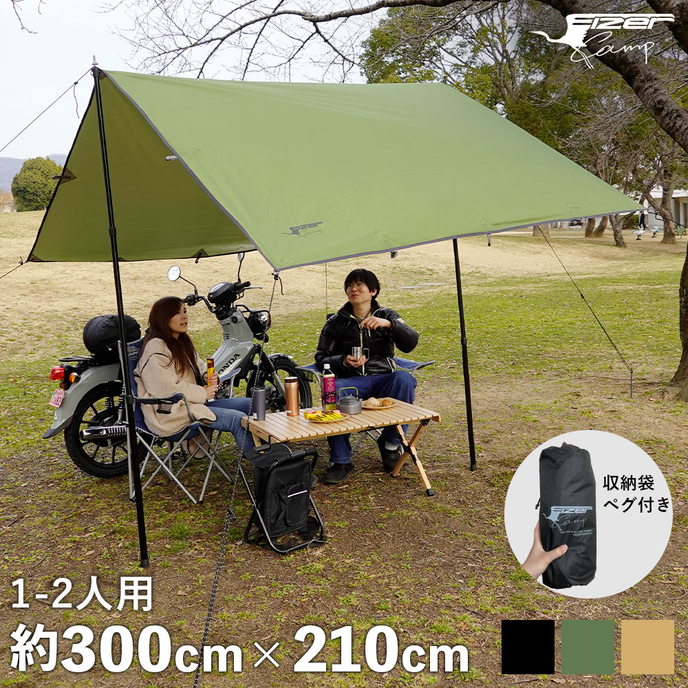 タープ タープテント 1人用 2人用 防水 おしゃれ 3m ソロキャンプ 丈夫 黒 スクエア カーキ 超軽量 ソロ 雨除け コンパクト 収納袋 UV
