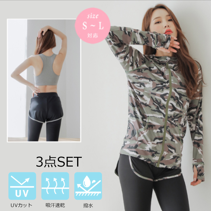 パーカー・スポーツブラ・レギンス(ショートパンツと一体型)