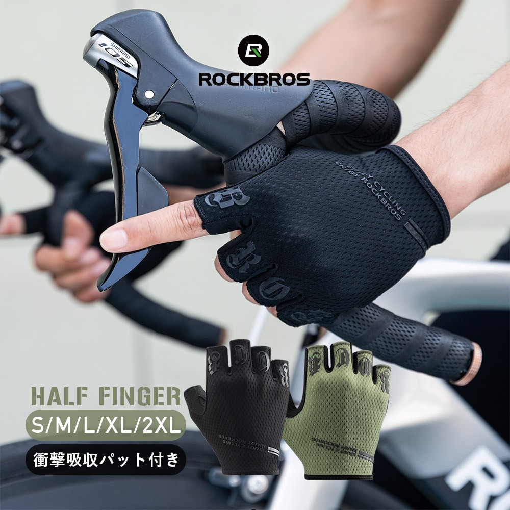 自転車 グローブ サイクルグローブ 春 夏 手袋 半指 ハーフフィンガー おしゃれ メッシュ 通気性 衝撃吸収 ロックブロス