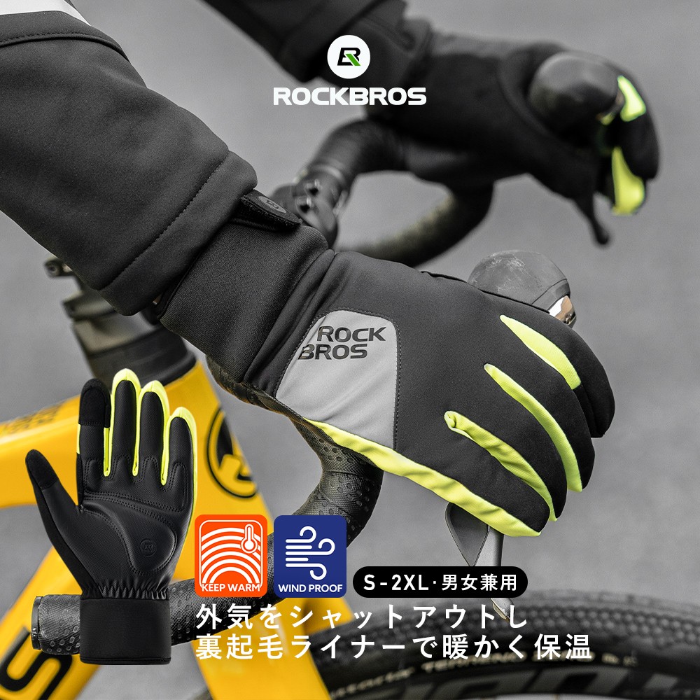 自転車 バイク グローブ 手袋 春 秋 冬 防風 防寒 保温 裏起毛 スマホ対応 高視認性 衝撃吸収 ロックブロス
