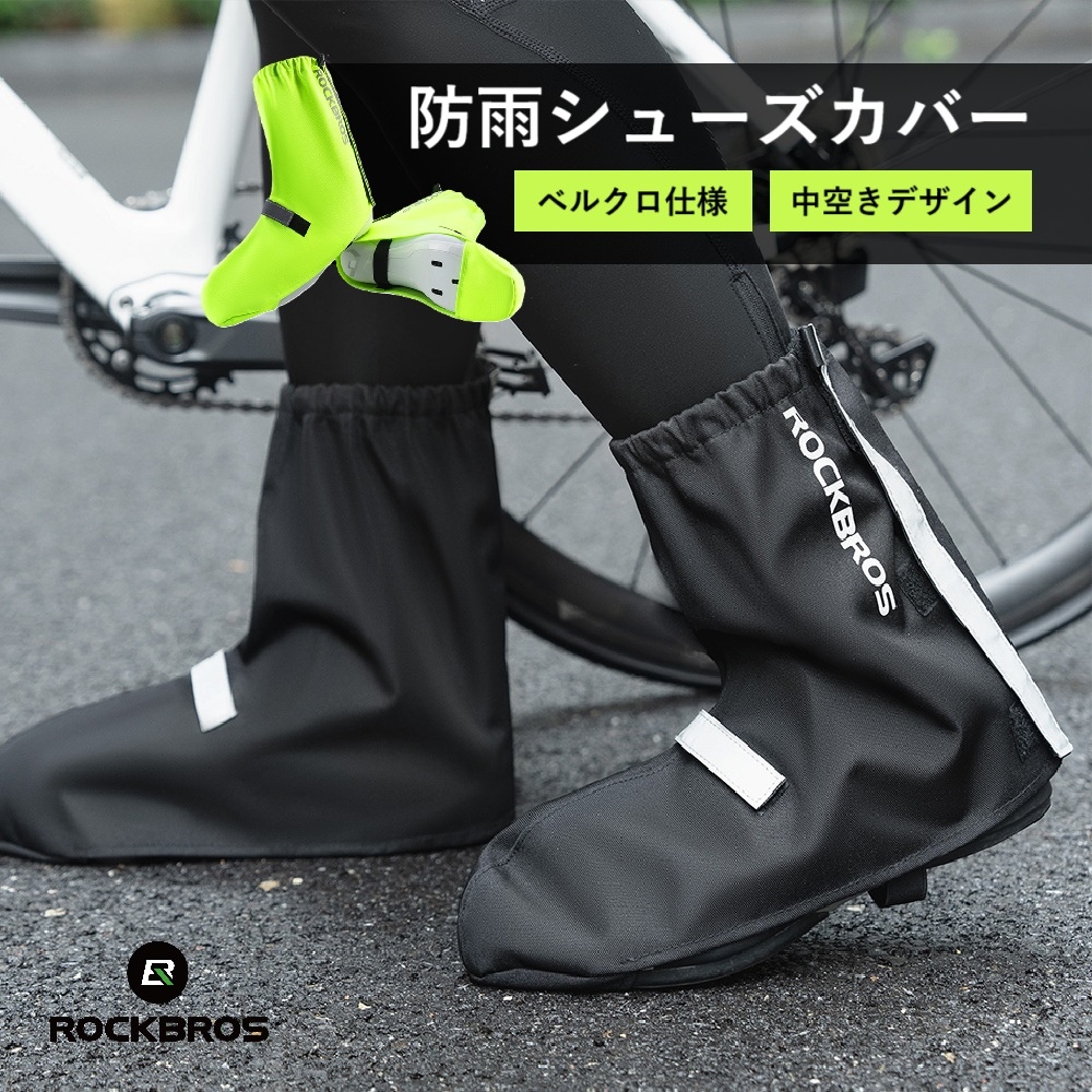 【ポイント2倍】自転車 シューズカバー 防雨 ベルクロ 簡単装着 ハイカット 靴 防風 撥水 収納ポーチ付属 レイン 梅雨 メンズ レディース ロックブロス