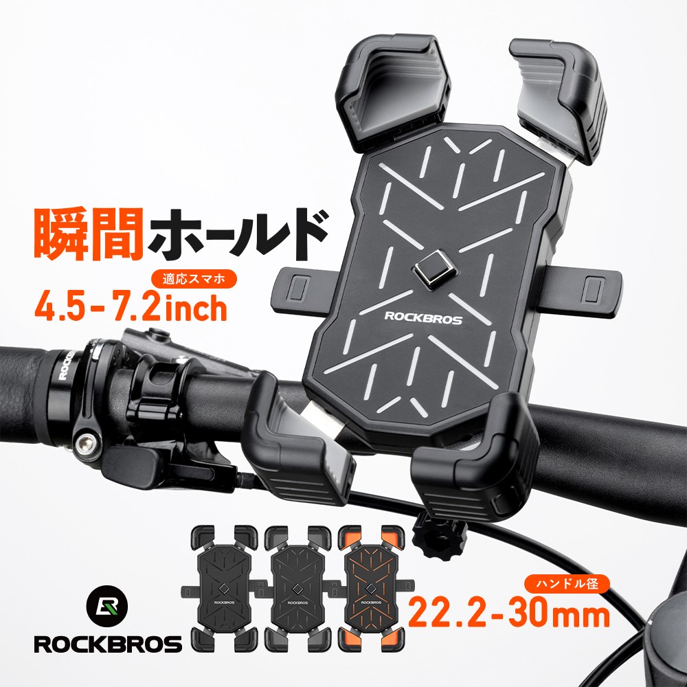 自転車 スマホホルダー スタンド 自動 瞬間 携帯 360度回転 角度 傾き 調整可能 横向き 充電 ロックブロス