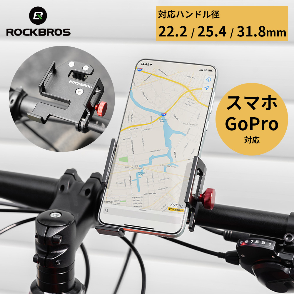 自転車 スマホホルダー 強力固定 安定 携帯ホルダー スマホスタンド アルミ合金製 脱落防止 ネジ固定 ナビ 携帯 サイクリング ロックブロス