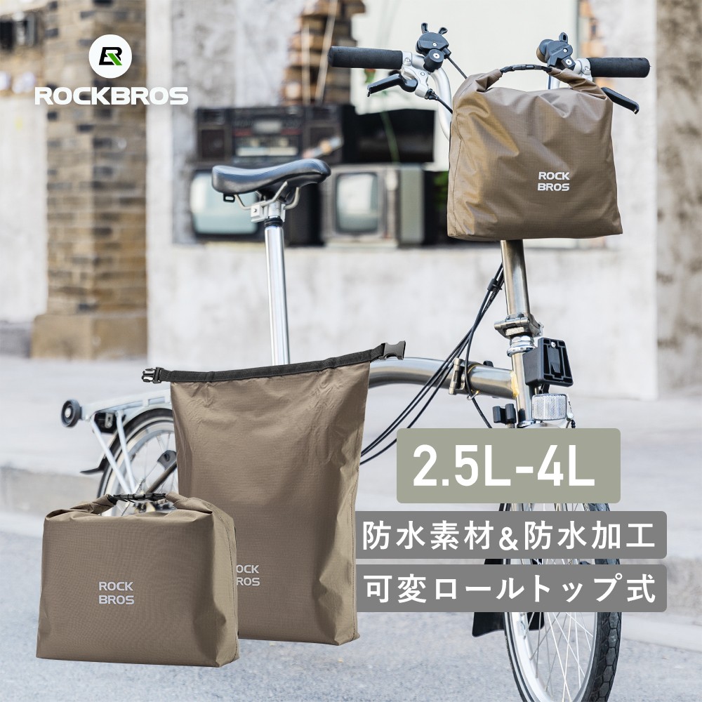 自転車 バッグ フロント ハンドル ロールトップ ベルクロ固定 防水 2.5L-4L 軽量 ロード クロス ミニベロ 電動キックボード ロックブロス
