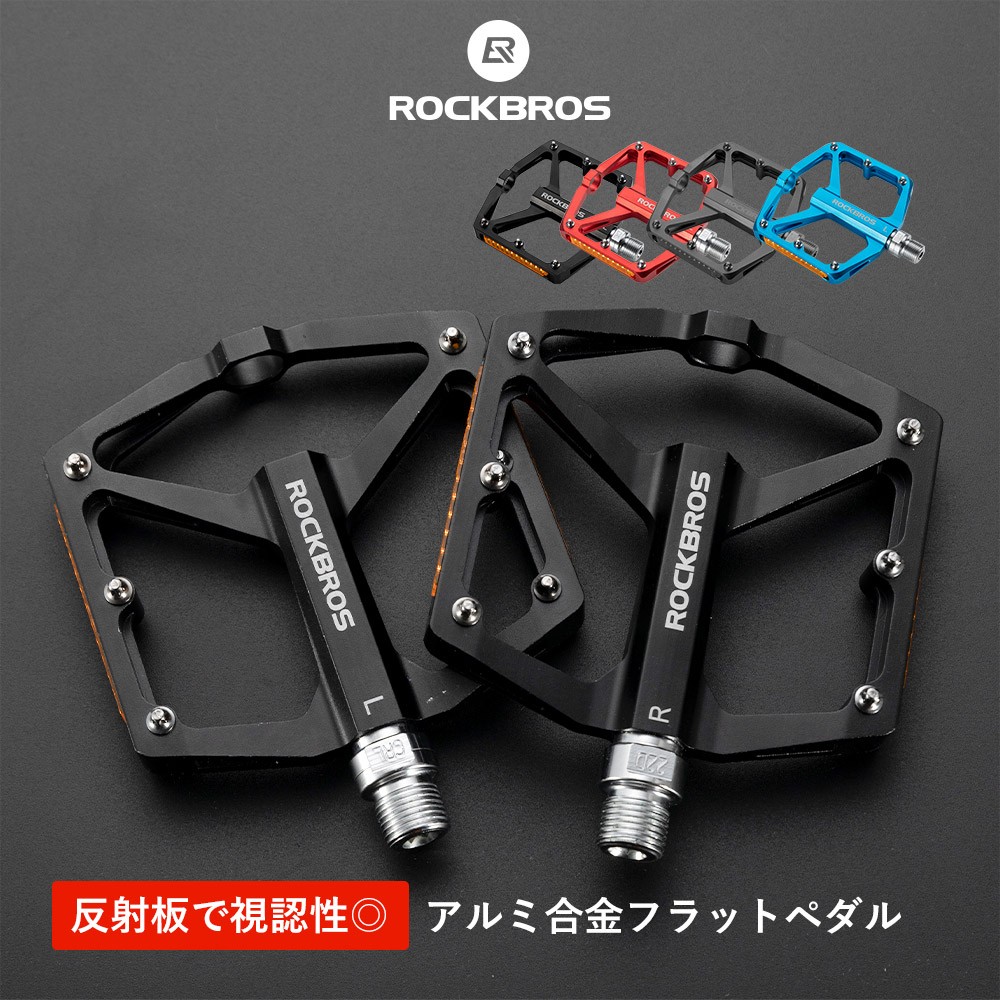 ペダル 自転車 フラット 反射板 9/16インチ 幅広 軽量 滑り止め クロスバイク ロードバイク ミニベロ ロックブロス