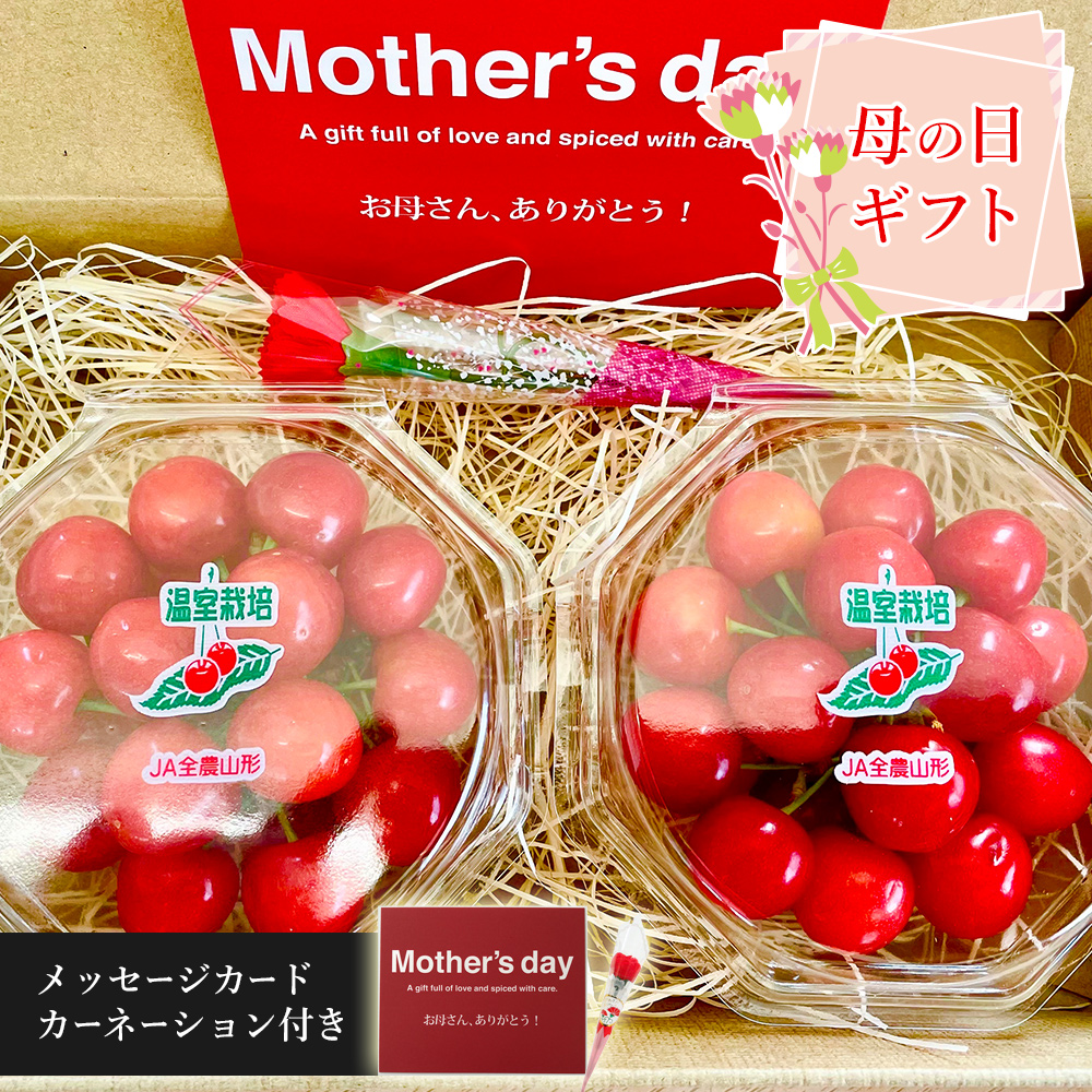 産地直送さくらんぼA 佐藤錦 約100g × 2パック 母の日カード・カーネーション付き 山形県産 ギフト のし・ギフト対応不可