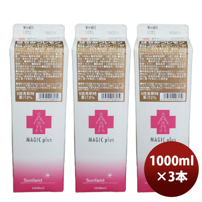 希釈 割材 シロップ 三田飲料 マジックプラス PLUS ローヤルゼリーとビタミンC はちみつレモン 1000ml 1L 3本 のし・ギフト対応不可