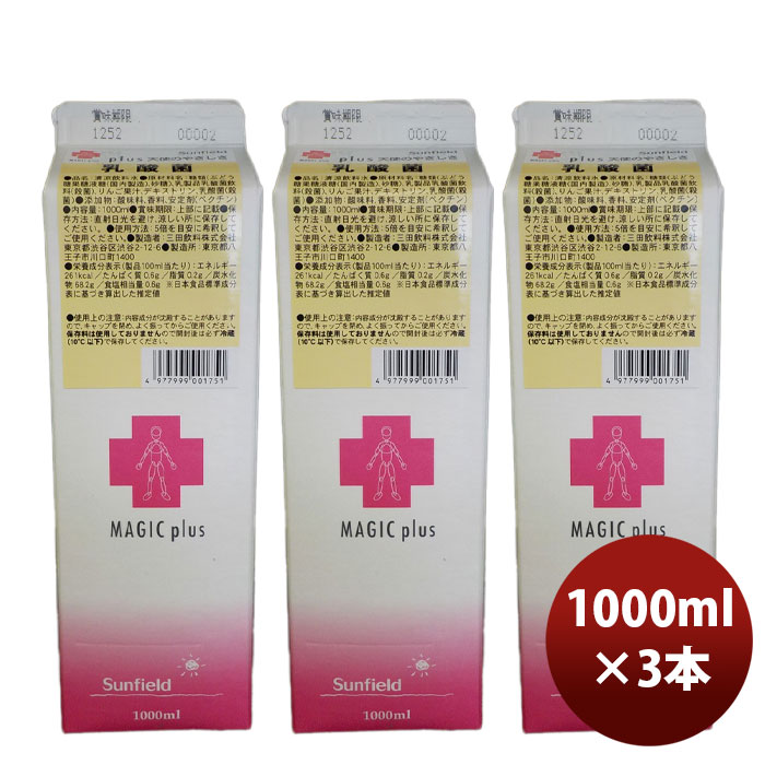 希釈 割材 シロップ 三田飲料マジックプラス PLUS 天使のやさしさ乳酸菌 1000ml 1L 3本 新生活 のし・ギフト対応不可