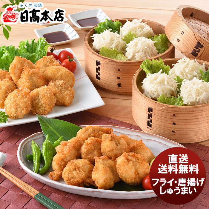 原材料 :まふぐフライ200g、まふぐ唐揚げ200g、ふくしゅうまい6個(ぽん酢・もみじおろし付き)