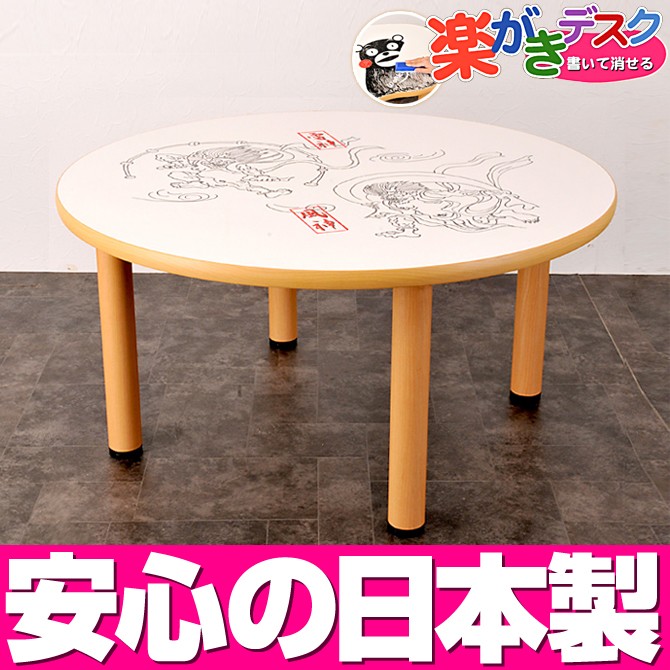 楽がきデスク 円型(脚付き) 脚カラー:木目調 TE-M/らくがき 学習机 テーブル 白 机 こども キッズコーナー