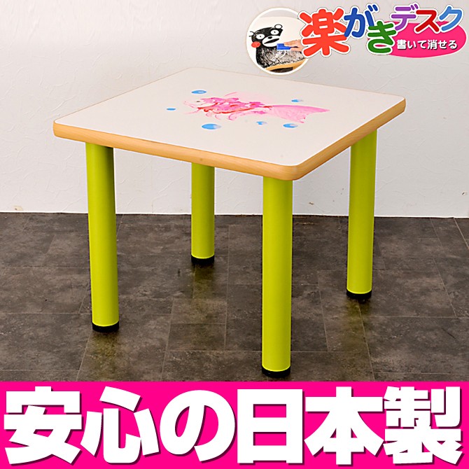 楽がきデスク 正方形(脚付き) 脚カラー:ライトグリーン TS-G/らくがき 学習机 テーブル 白 机 こども キッズコーナー