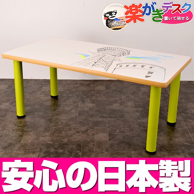 楽がきデスク 長方形(脚付き) 脚カラー:ライトグリーン TT-G/らくがき 学習机 テーブル 白 机 こども キッズコーナー