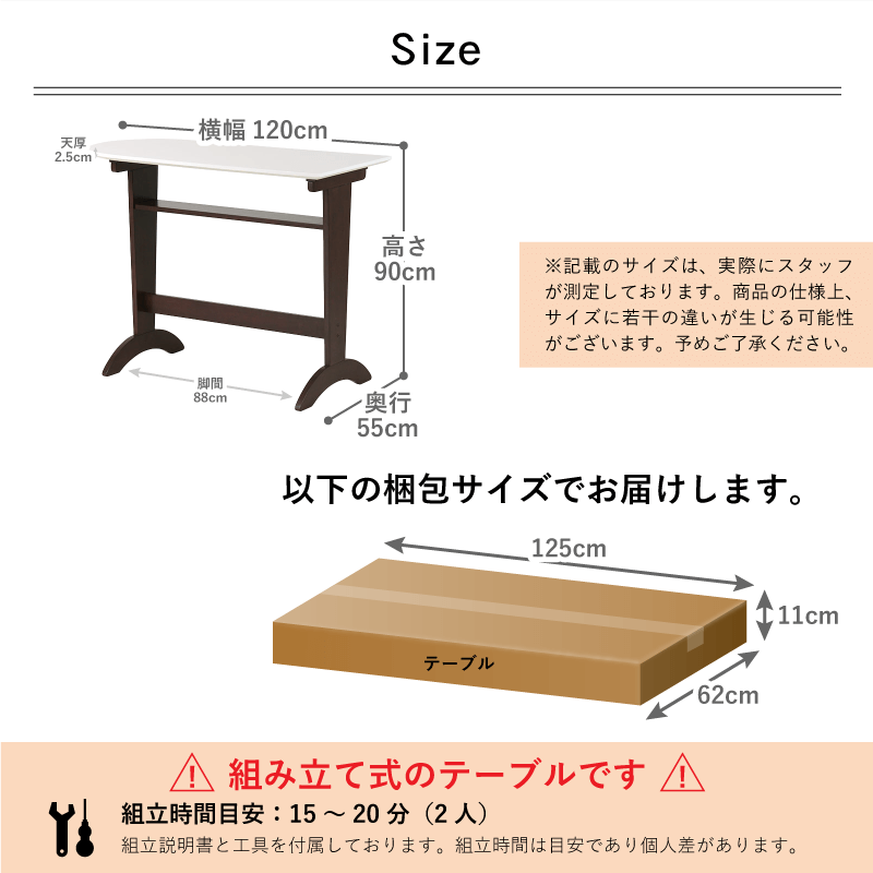 幅120×奥行55×高さ90cm(天厚2cm)