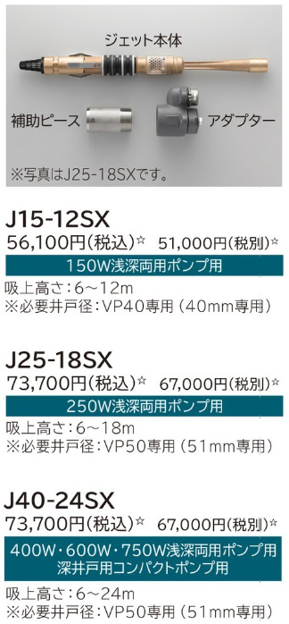 井戸径の狭い場合の深井戸ジェットポンプにお使い下さい。