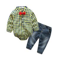 ベビー服 韓国子供服 長袖ジャージ キッズ服 春秋フォーマルスーツ 男女兼用 蝶ネクタイ 女の子 男の子 チェック柄のシャツ+ジーンズ Gジーパン