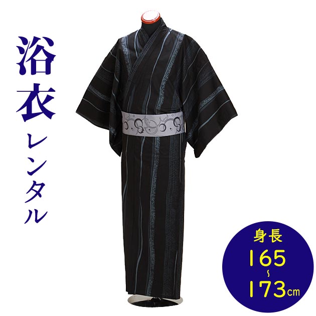 浴衣 メンズ レンタル 浴衣 メンズ セット 浴衣セット メンズ NT-my108 黒グレー色/縞かすり 男性 ゆかたレンタル 往復送料無料