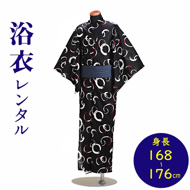 浴衣 メンズ レンタル 浴衣 メンズ セット 浴衣セット メンズ NT-my125 黒白赤浪漫 男性 ゆかたレンタル 往復送料無料