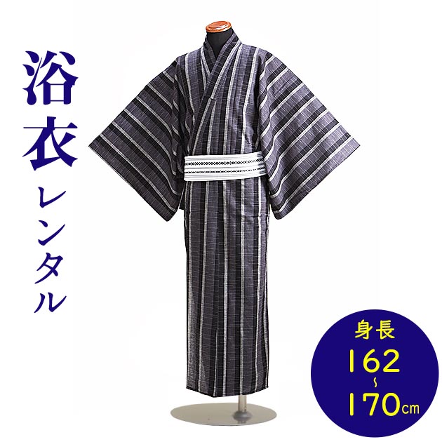 浴衣 メンズ レンタル 浴衣 メンズ セット 浴衣セット メンズ NT-my127 黒グレーうすグレー縞 男性 ゆかたレンタル 往復送料無料