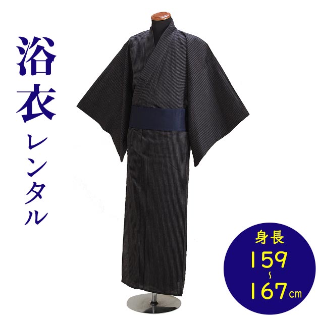 浴衣 メンズ レンタル 浴衣 メンズ セット 浴衣セット メンズ NT-my131 黒縞 男性 ゆかたレンタル 往復送料無料