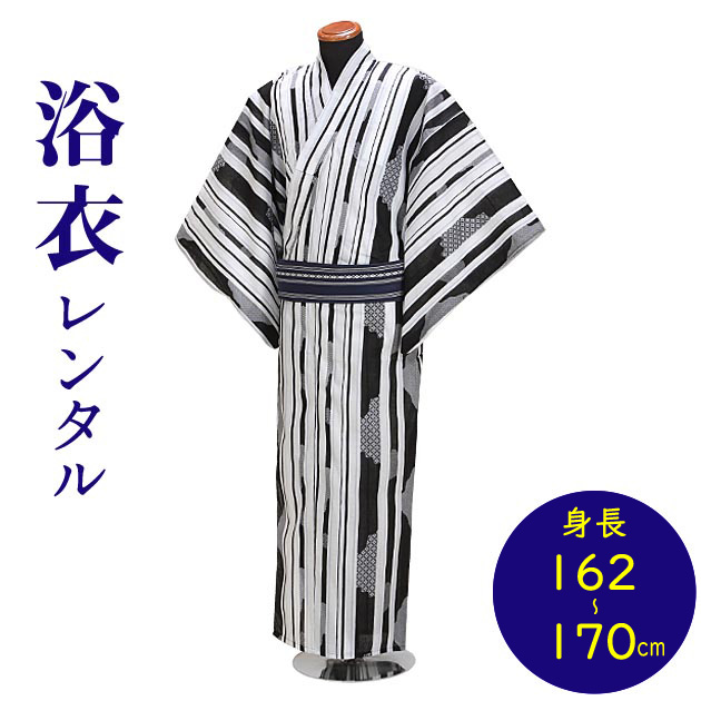 浴衣 メンズ レンタル 浴衣 メンズ セット 浴衣セット メンズ NT-my202 白黒色/古典柄 男性 ゆかたレンタル 往復送料無料
