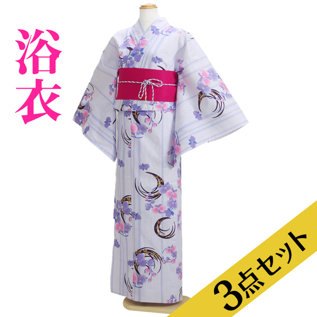 ■セット内容:浴衣・帯・下駄またはウレタン草履(フリーサイズ:〜24.5cm)・腰ヒモ2本・伊達締め