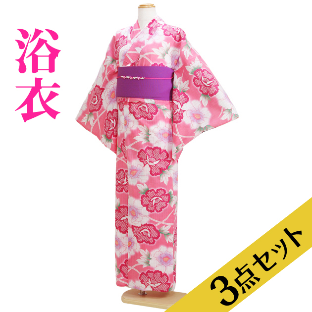 浴衣レンタル 浴衣レディースセット 浴衣 レディース 3点セット NT-y005 ピンク 花 浴衣セット 往復送料無料