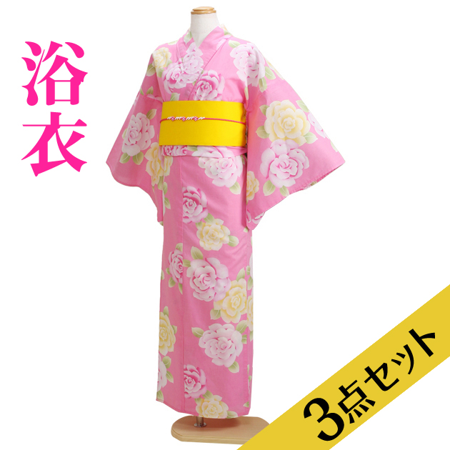 浴衣レンタル 浴衣レディースセット 浴衣 レディース 3点セット NT-y008 ピンク バラ 浴衣セット 往復送料無料
