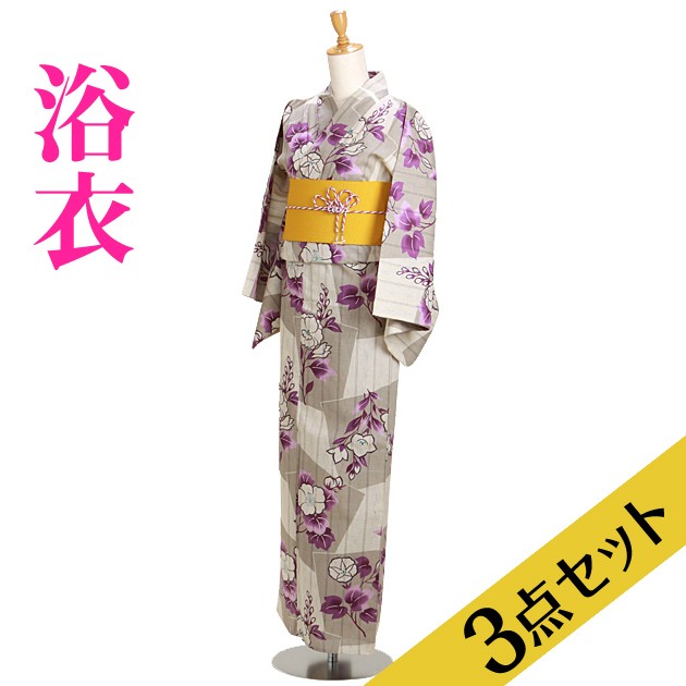 浴衣レンタル 浴衣レディースセット 浴衣 レディース 3点セット NT-y046 ベージュ 桔梗 浴衣セット 往復送料無料