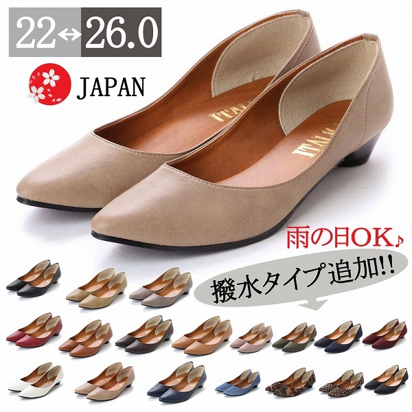 パンプス レディース ローヒール 痛くない 走れるパンプス ポインテッド 撥水加工 レイン 日本製 スムース 大きいサイズ