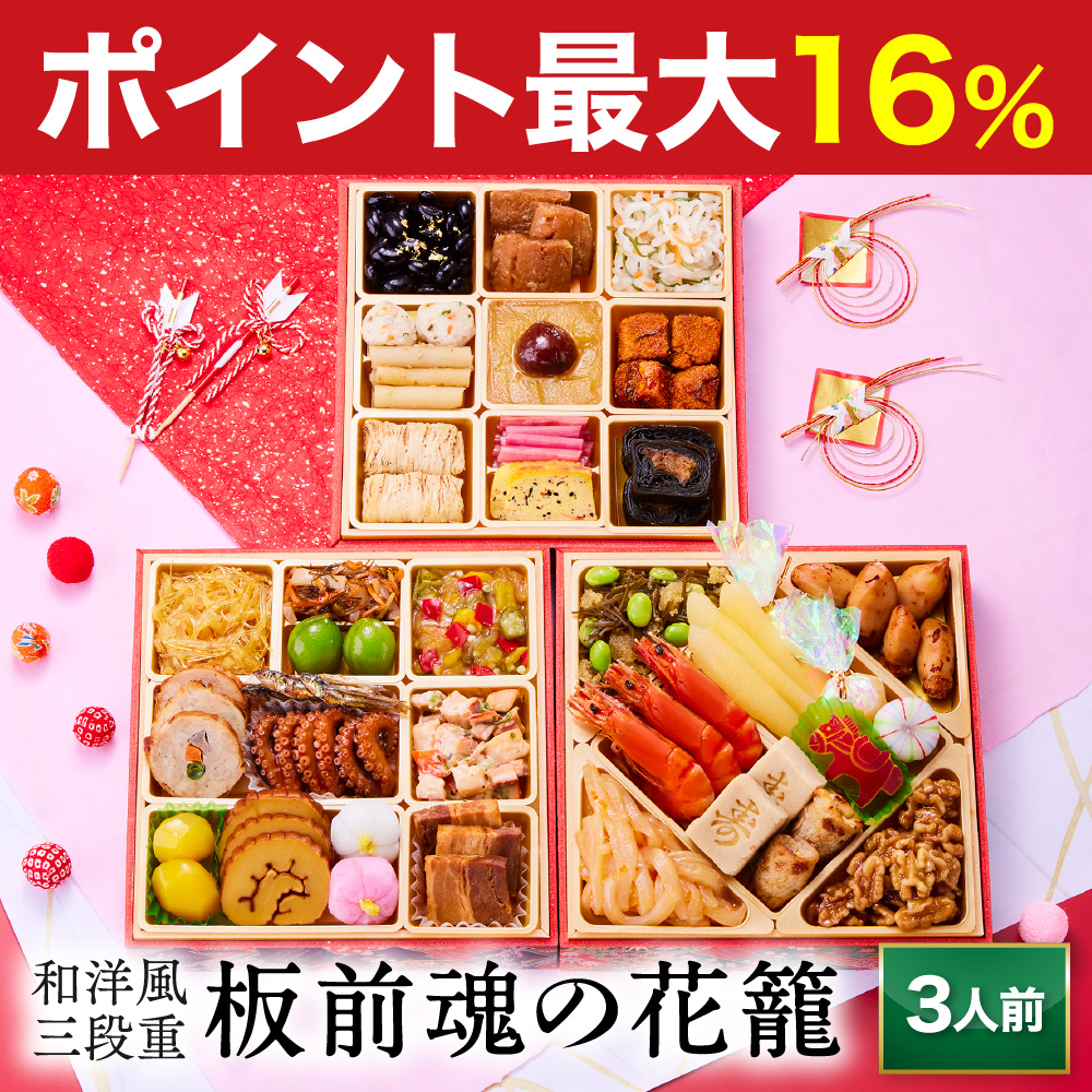 商品内容和洋風 三段重 おせち 板前魂の花籠