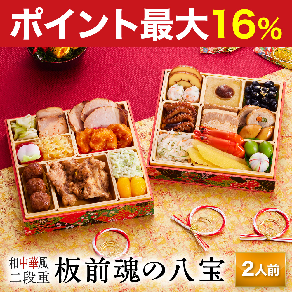 商品内容和中華風 二段重 おせち 板前魂の八宝