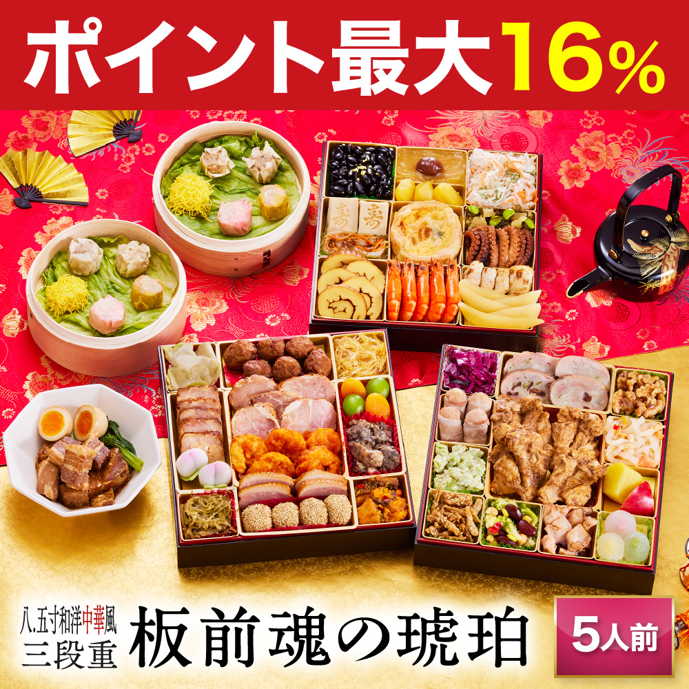 商品内容八.五寸 和洋中華風 三段重 おせち 板前魂の琥珀