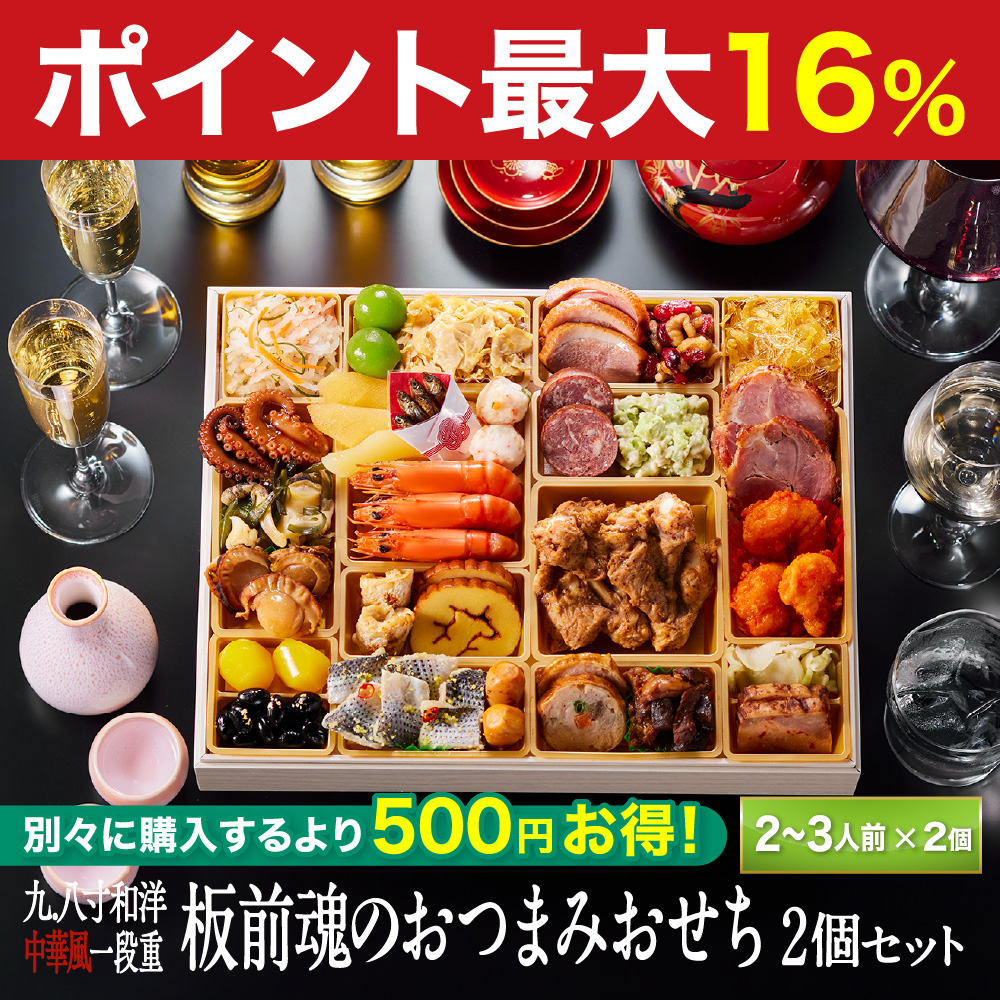 商品内容九.八寸 和洋中華風 一段重 おせち 板前魂のおつまみおせち 2個セット