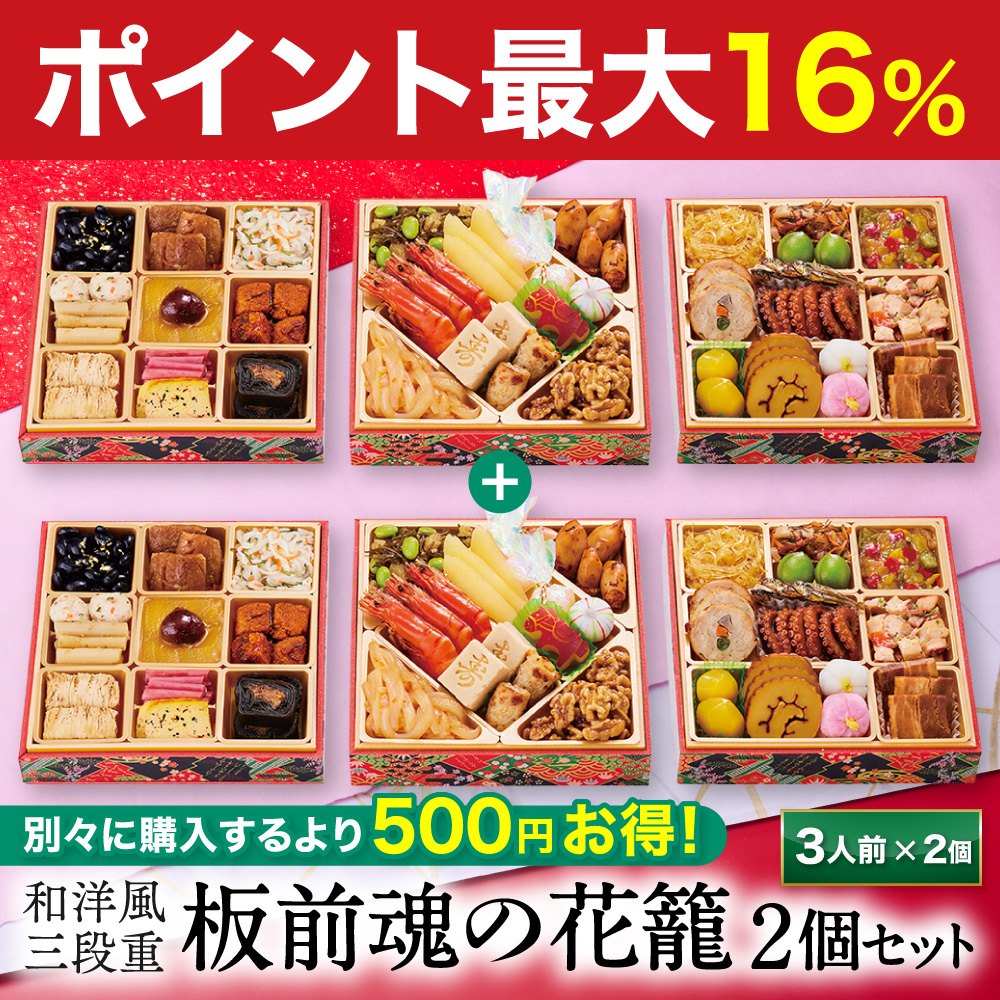 商品内容和洋風 三段重 おせち 板前魂の花籠 2個セット