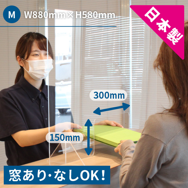 【 窓 有・無】感染防止 透明 アクリルパーテーション (Mサイズ:W880mm×H580mm)飛沫防止 仕切り 間仕切り 仕切り板 衝立 自立 テーブル 卓上 簡単 設置