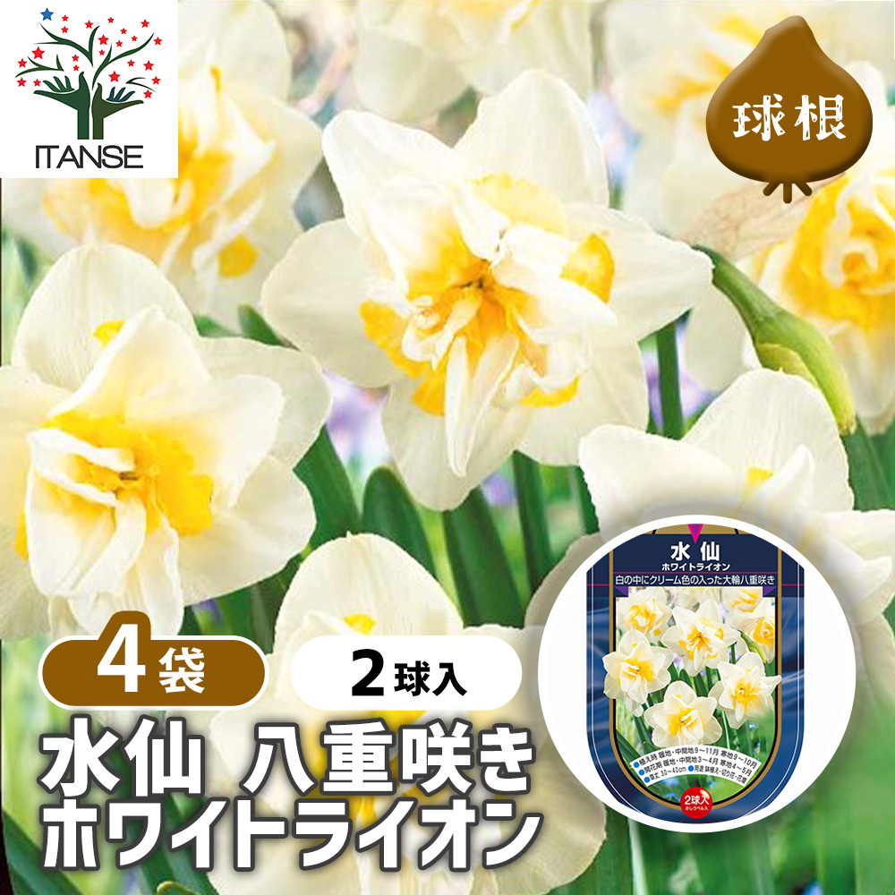 水仙八重咲き ホワイトライオン スイセン Narcissus ラッパズイセン 口紅スイセン 花 花球根 球根植物 きゅうこん キュウコン 球根 ガーデニング 植物 栽培 庭 庭植え 地植え 鉢植え ベランダ プランター 庭木 植木 花壇 寄せ植え 鑑賞 美しい 可愛い ガーデン 種 苗 園芸 フラワー 家庭菜園 DIYイタンセ ITANSE プライム prime 送料無料 即出荷 即納 即日出荷 翌日配送 爆買