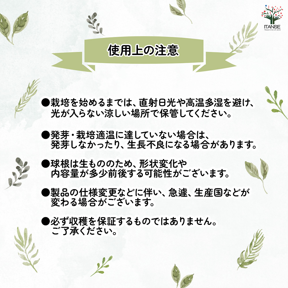 商品到着後、お客様による1か月以上保存後の球根品質劣化には返金などの対応はしておりません。ご了承ください。【検索キーワード】