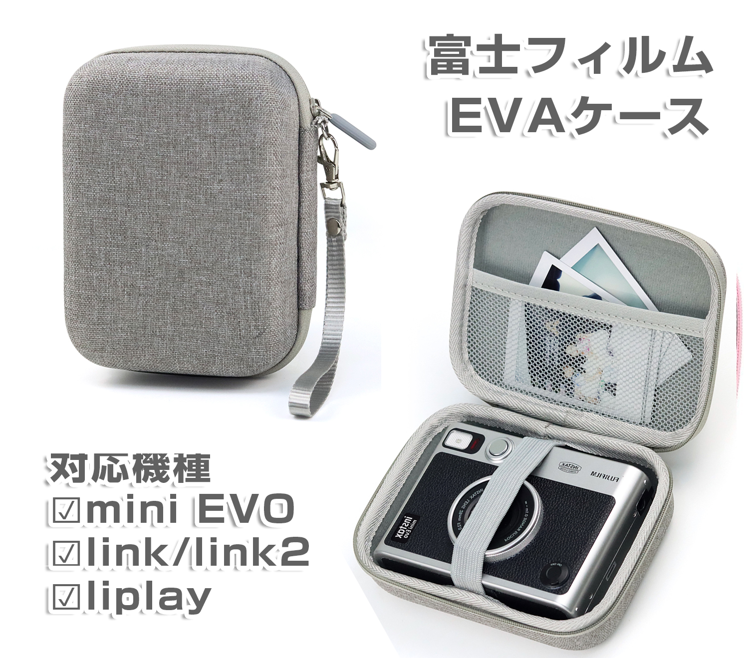 FUJIFILM 富士フイルム チェキ instax mini EVO liplay link2 収納ケース 保護ケース ストラップ付き グレー