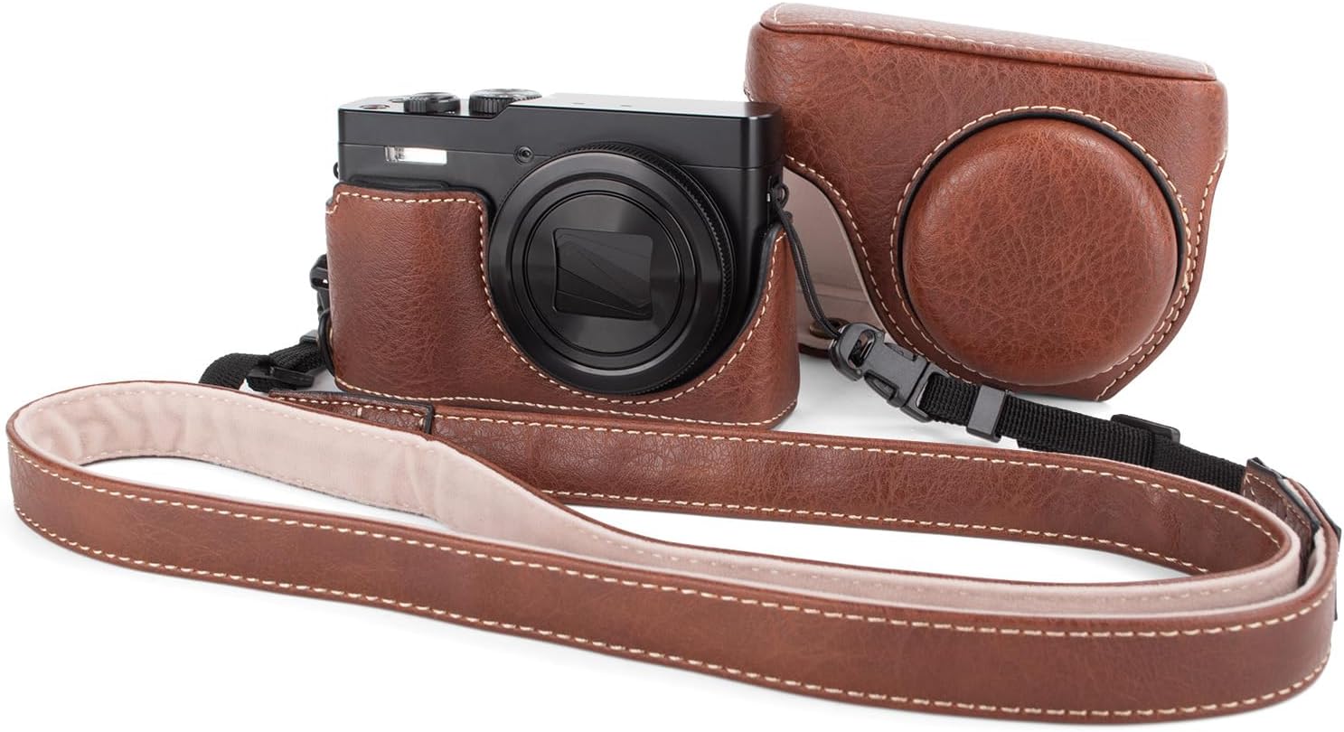 パナソニック Lumix TZ99 ケース ITARUKEN Panasonic DC-ZS99/TZ99 zs99 tz99 PUレザー Lumix ZS99/TZ99用 カメラ カバー ショルダーストラップ付き ブラウン