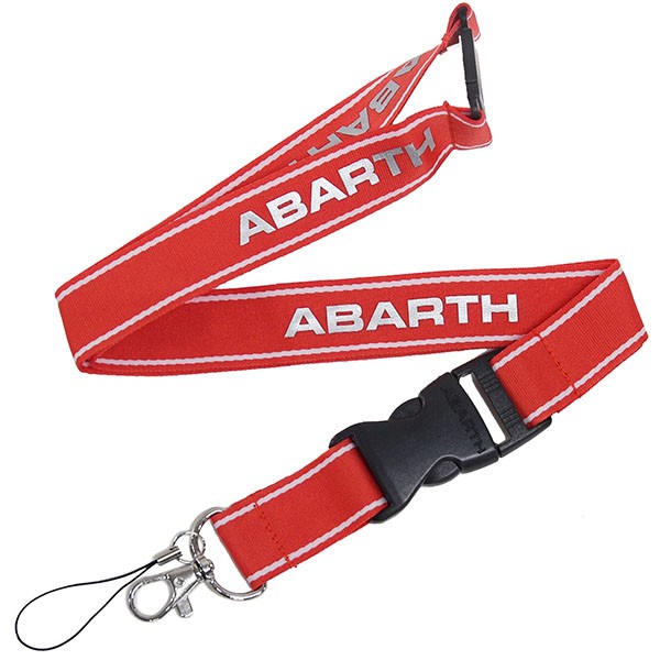 やや朱色がかったABARTHらしいカラーを纏ったABARTH純正ネックストラップです。ストラップ部分にはホワイトのストライプ、そしてシルバーのABARTHロゴがクッキリと記され、抜群のアクセントになっています。
