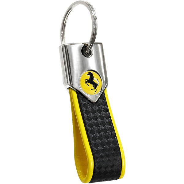 Ferrariのスポーティなイメージ満載のキーリングです。ストラップ部分はカーボンルック仕上げ。そこにホワイト/レッド/イエロー/シルバー各色トリミングが絶妙に配されています。