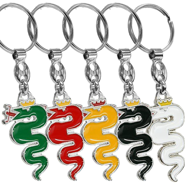 蛇/ヘビ といえば、Alfa Romeoのトレードマークの一つBISCIONE(ビショーネ)。その出自を知らないアルフィスタはいないと断言できるほど、このマスコットはあまりにも有名です。このAlfa Romeoの代名詞とも言うべきマスコットがキーリングになりました。カラーバリエーションも楽しめます。