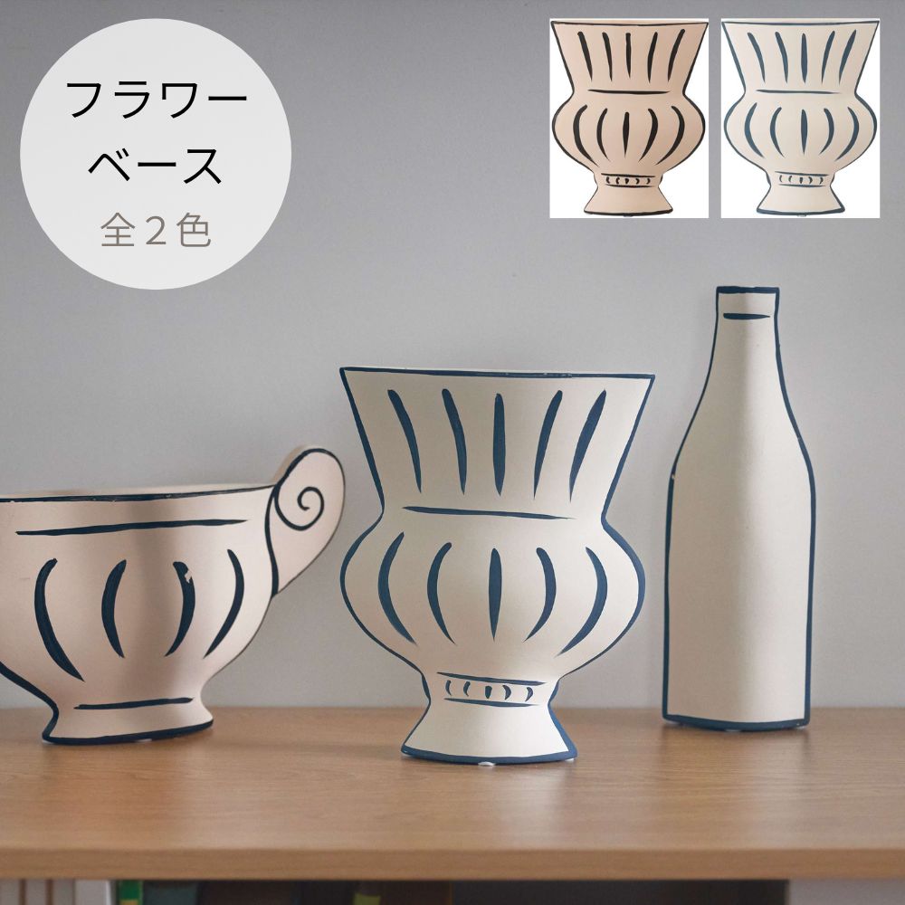 フラワーベース CLY-81 花器 花瓶 花びん かびん フラワースタンド 2D 平面 平面的 手描き アート 陶器 陶器製 ドライフラワー 枝物 おしゃれ シンプル モダン