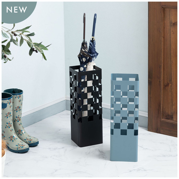 〇スタイリッシュなチェック模様のシンプルな傘立て。