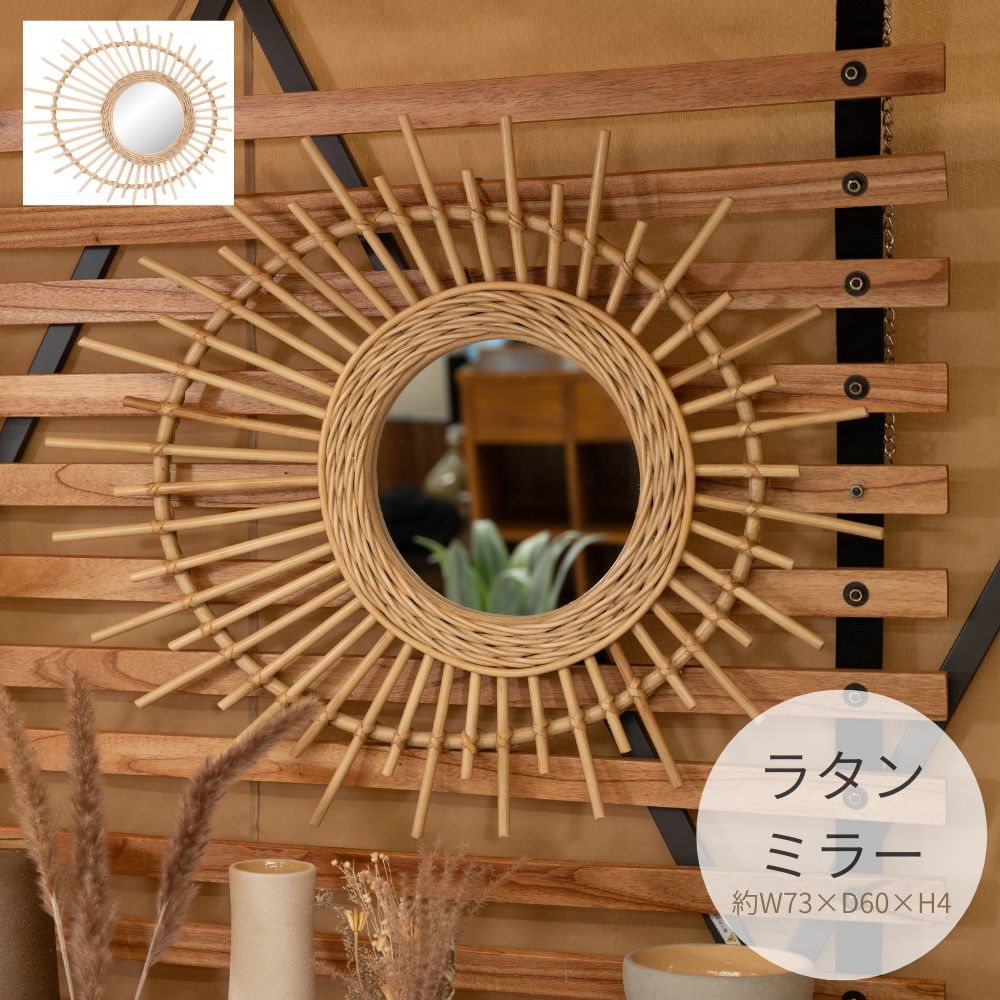 ラタンミラー MR-715 壁掛け 鏡 ミラー 丸型 ウォールミラー 壁かけ 卓上 アジアン 北欧 おしゃれ かわいい 化粧鏡 寝室 ドレッサー