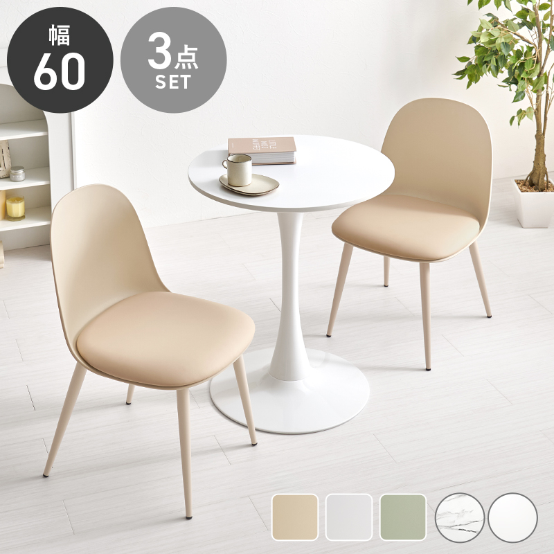 テーブル&チェア3点セット BT-8657-55-3S テーブル 机 デスク ダイニングテーブル リビングテーブル カフェテーブル ダイニングセット 直径60cm