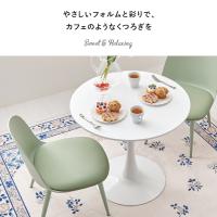 くすみカラーと丸いフォルムがかわいいデザインのチェアを合わせました。
