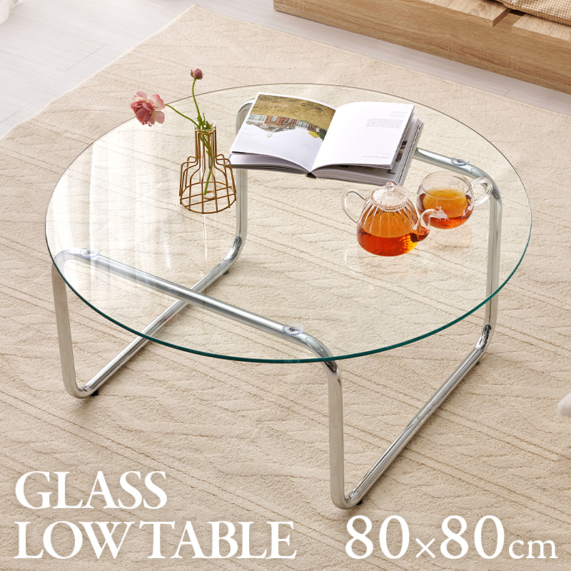 ガラステーブル W80 BT-8661 幅80cm シンプル 丸型 ガラス 幅80cm 奥行80cm 高さ38cm ローテーブル おしゃれ センターテーブル