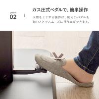 〇ガス圧式ペダルで無段階に高さを調節できる昇降式。