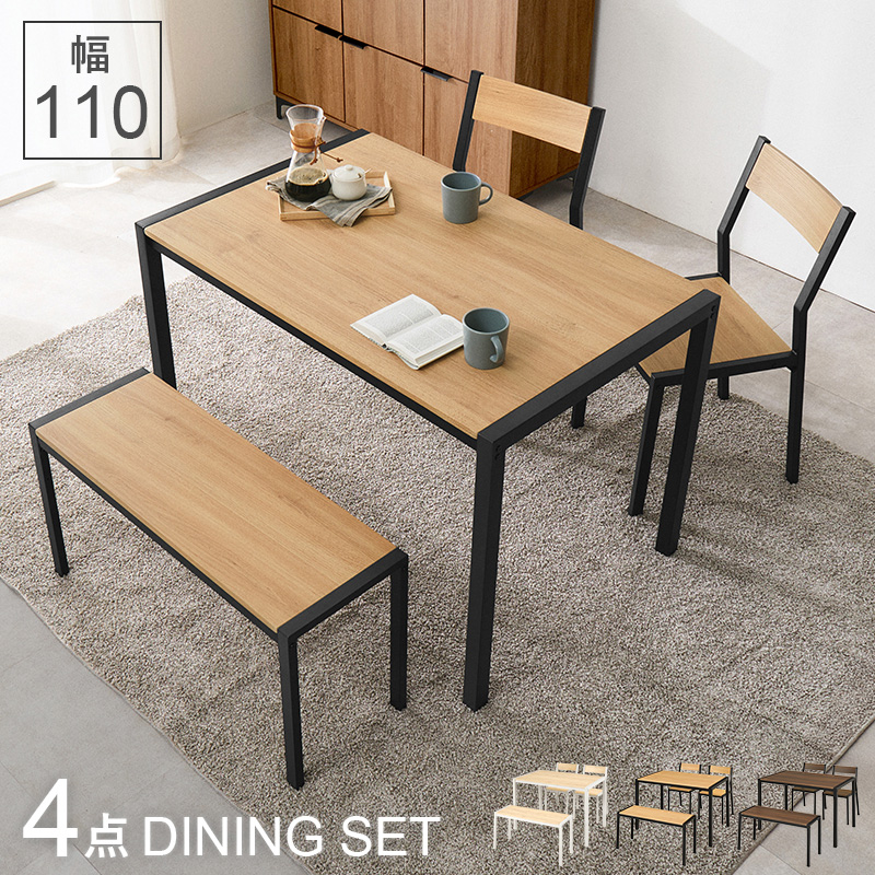 〇温かみのある木目調天板とアイアンフレームを組み合わせたダイニング4点セット。